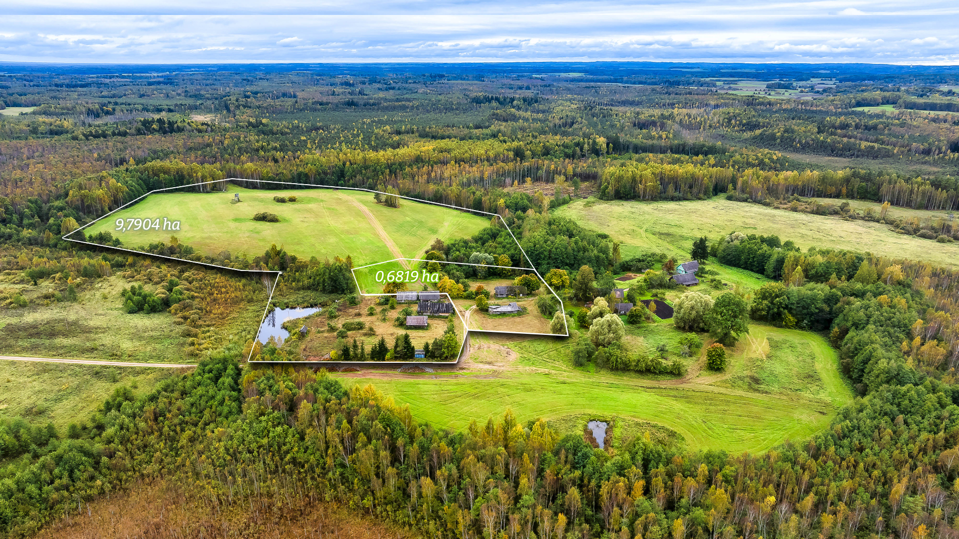 - Žemės ūkio paskirties sklypas, 9,7904 ha, yra virš 5 registruotų pastatų (Gyv. namas 96,70 kv.m).