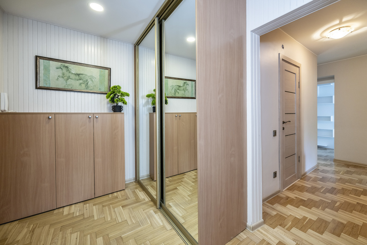 - Yra atskiras kambarys - drabužinė - šalia miegamojo kambario;