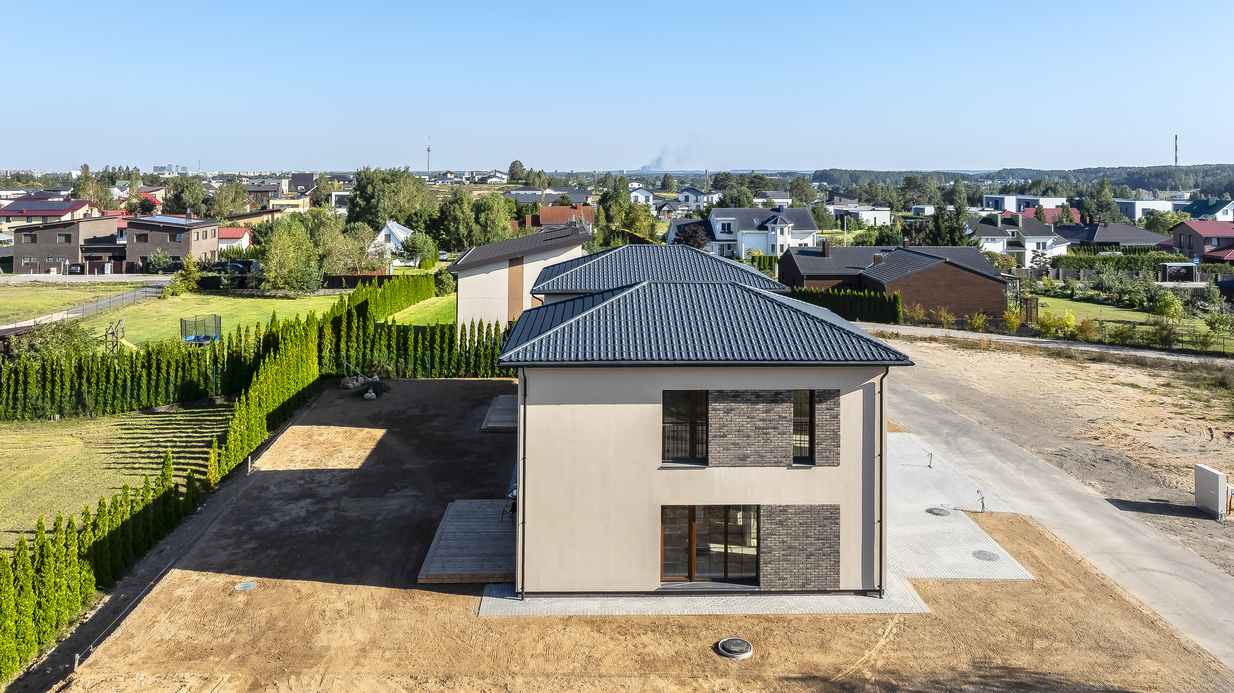 - Prabangus namo eksterjeras - natūralus klinkeris ir dekoras;
