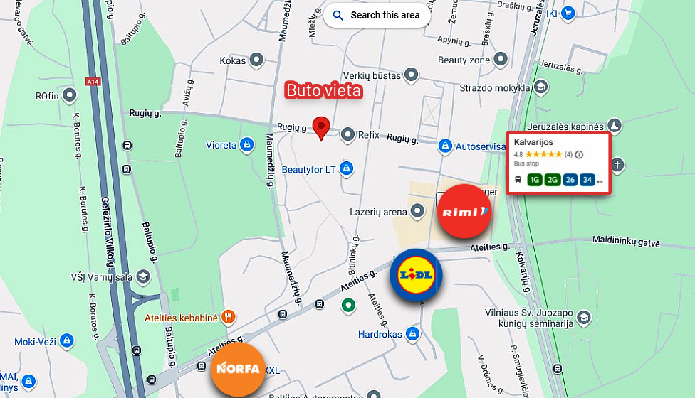 - Už 50 m artimiausia autobusų stotelė;