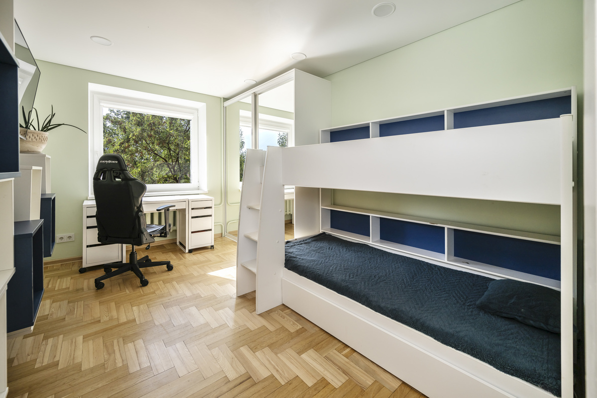 - Kambariai: 3 + virtuvės kambarys, drabužinė, vonia su wc.