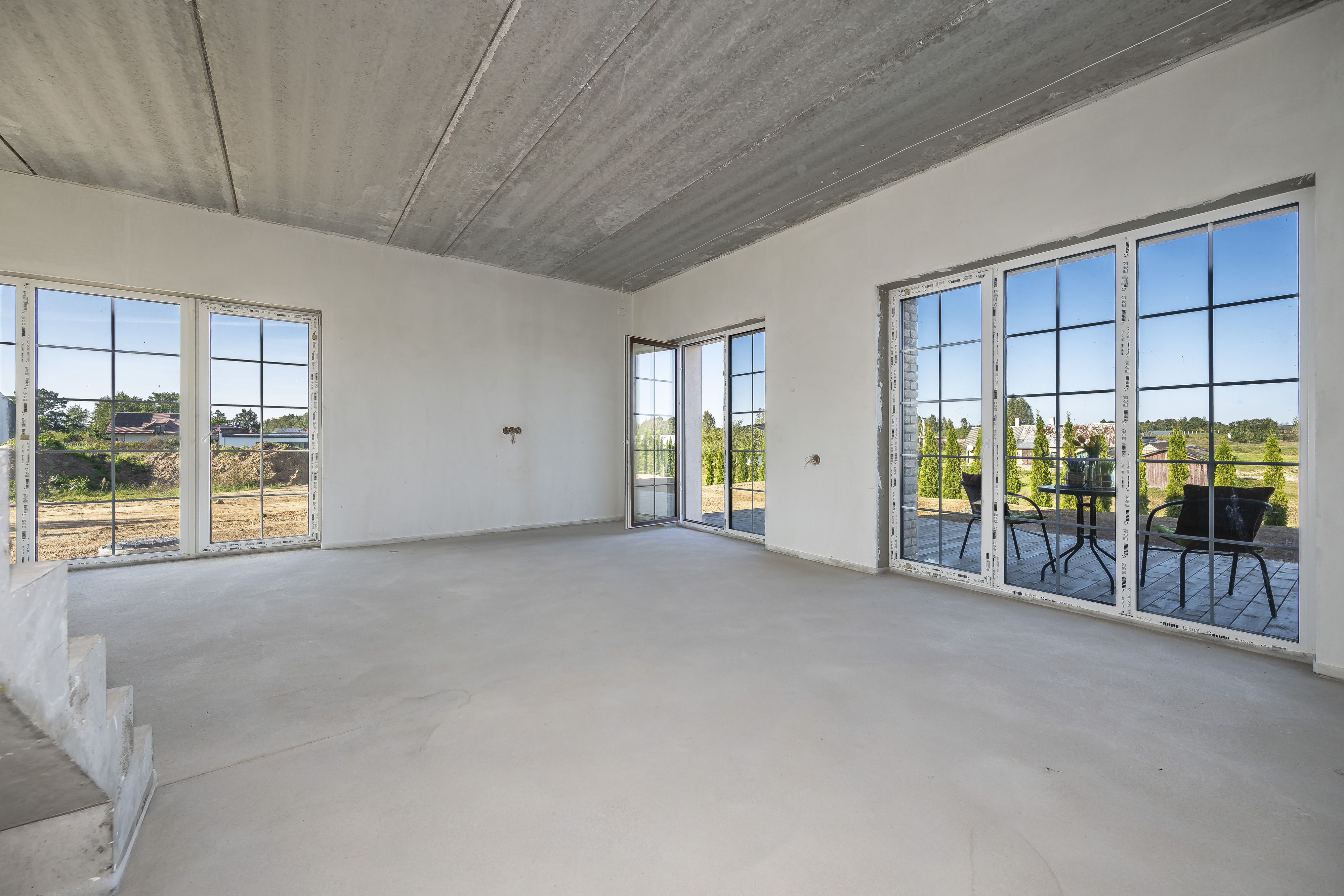 - Labai dideli vitrininiai langai;
