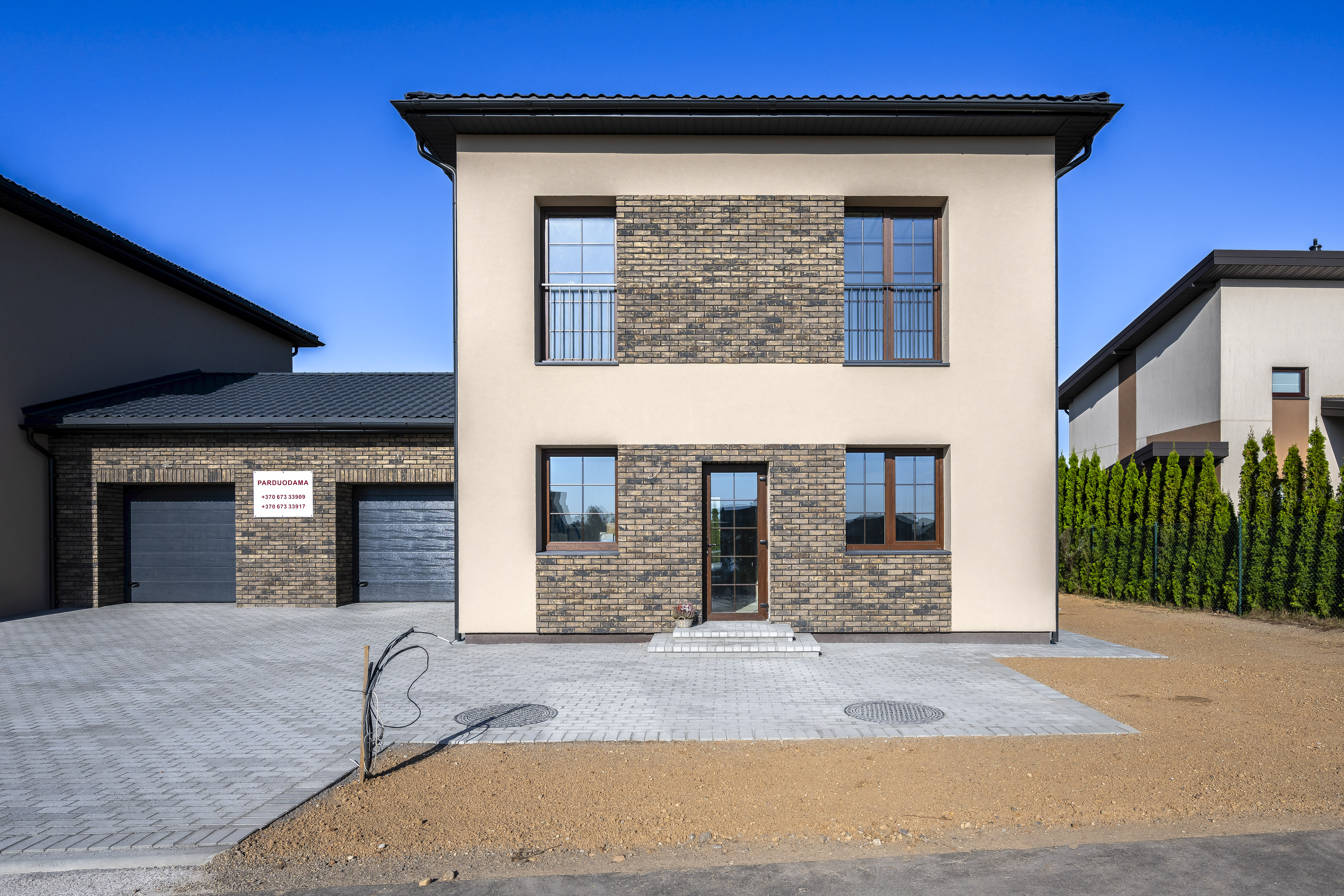 - Prabangus namo eksterjeras - natūralus klinkeris ir dekoras;